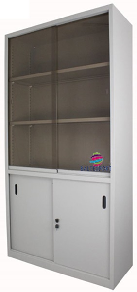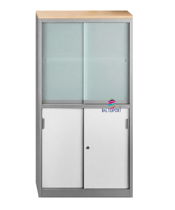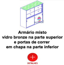 Armário Misto Portas Correr Vidro Transparente / Bronze ou Fosco na Parte Superior e Portas de Correr em Chapa na Parte inferior