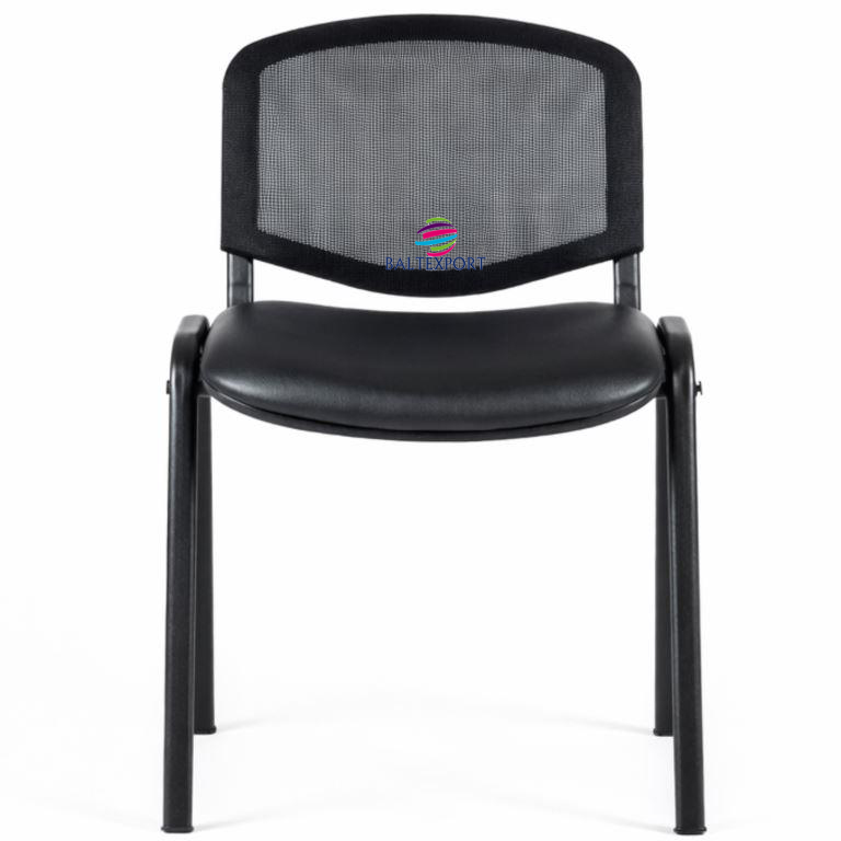 Cadeira de Escritório Visitante Fixa 4 Pés Costa em Rede Preta / Cadeira de Formação Com Palmatoria / Visitante / Multiusos / Igrejas / Reunião / Revestida Tecido ou Pele Sintética Nova / Estrutura Oval Pintura Texturado.