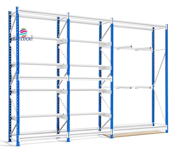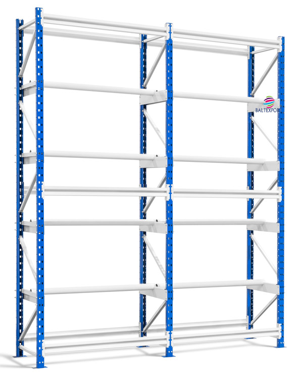 Suporta até 300 kg por nível, ideal para cargas pesadas e volumosas.
